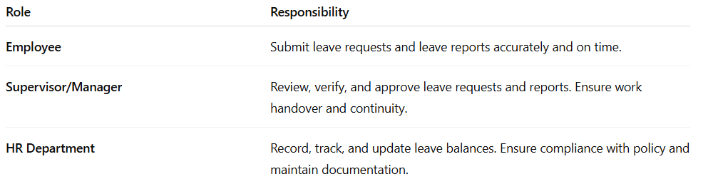 - HR will review and record the sick leave, update the employee’s leave balance, and ensure medical certificates are properly filed.